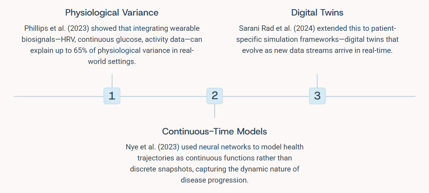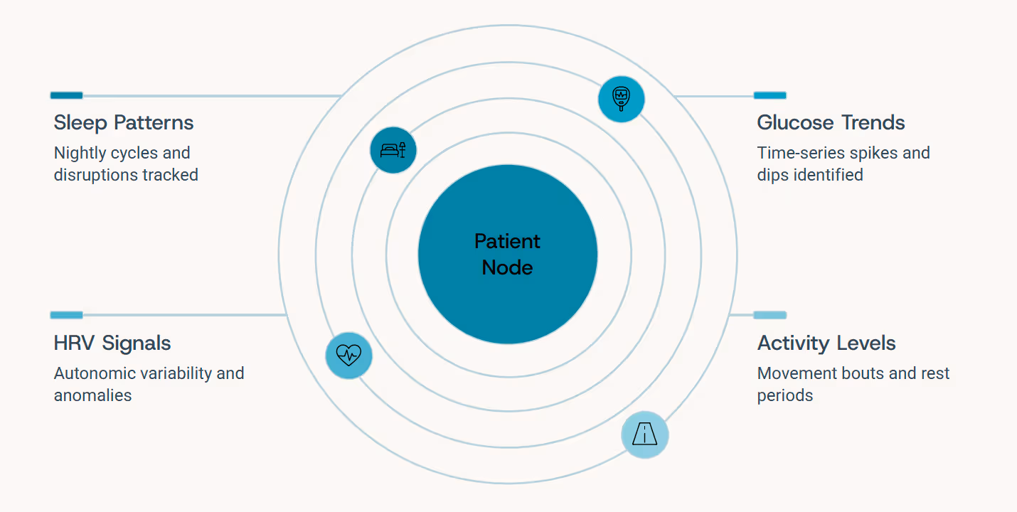 If medical imaging captures space, wearable biosensors capture time. Every heart rate variability measurement, glucose fluctuation, sleep cycle disruption, and activity pattern adds another edge in motion to the health graph - a continuously updated chronicle of how the body behaves moment by moment, day by day.